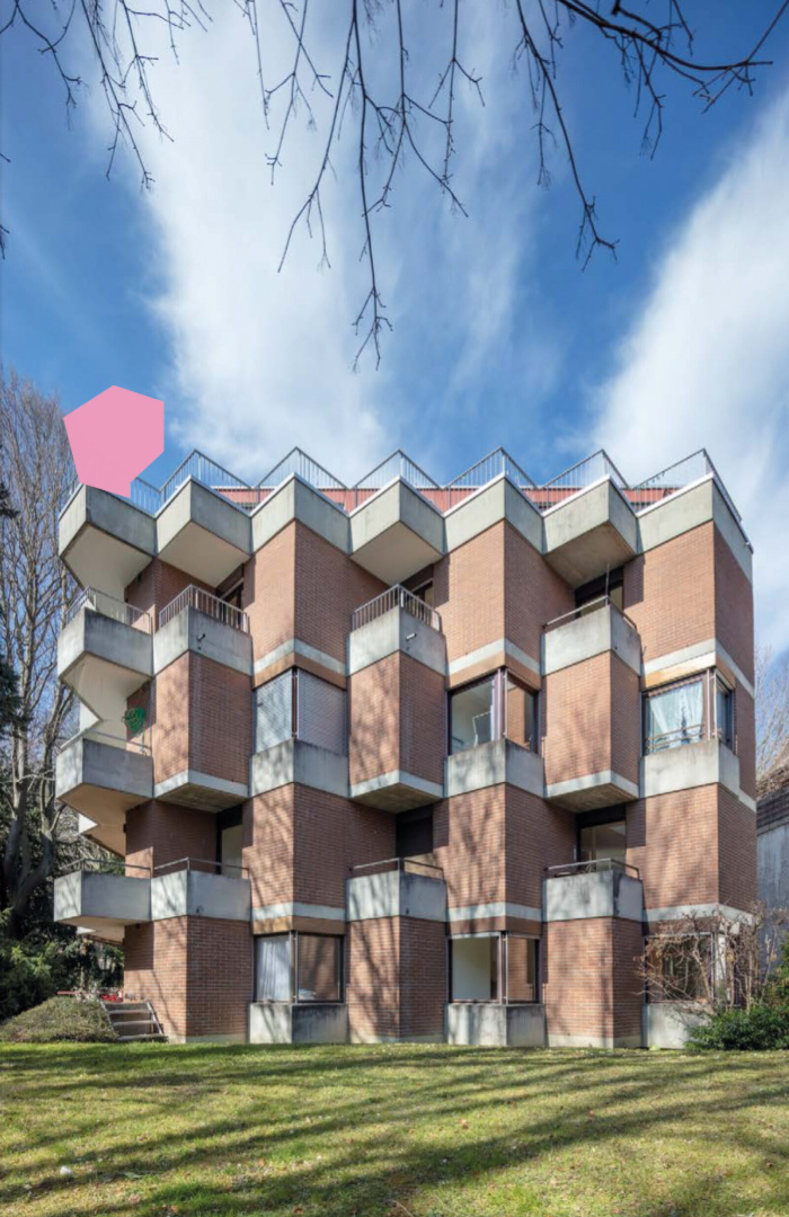 Der Bau bildet eine Weiterentwicklung des von Carlo Galli in den 1960er Jahren praktizierten Wohnhaustypus. Es weist zwar viele seiner Merkmale auf, wie Verbindung von Sichtbackstein und Beton, Schichtung der Fassaden und Eingangsbereich im Tiefparterre. Das neue Element bildet hier die zickzackförmig verlaufende Fassade, die dem Haus eine starke skulpturale Wirkung verleiht. Die Fassadengestaltung determiniert bei Galli den ganzen Gebäudegrundriss. Dadurch sind spannende Wohnungen mit diagonal verlaufenden Wänden entstanden.